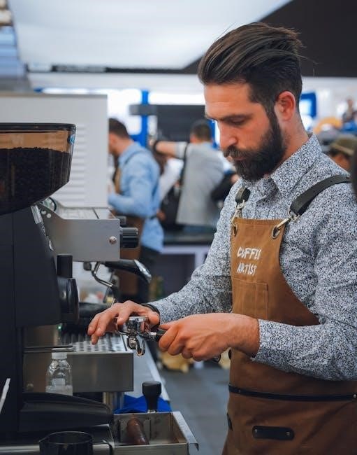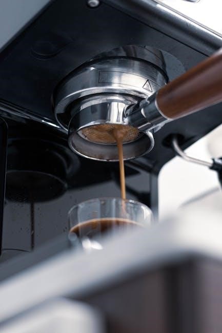 To maintain water quality and prevent impurities‚ replace the water filter every 1-2 months or as needed. Turn off the coffee maker and unplug it. Locate the water reservoir and remove the old filter. Rinse the new filter under fresh water for 30 seconds to activate it. Insert the new filter into the reservoir‚ ensuring it clicks securely. Reassemble the reservoir and plug in the machine. Run a few brewing cycles without coffee to flush out any carbon dust. Regular filter replacement ensures better-tasting coffee and optimal machine performance.